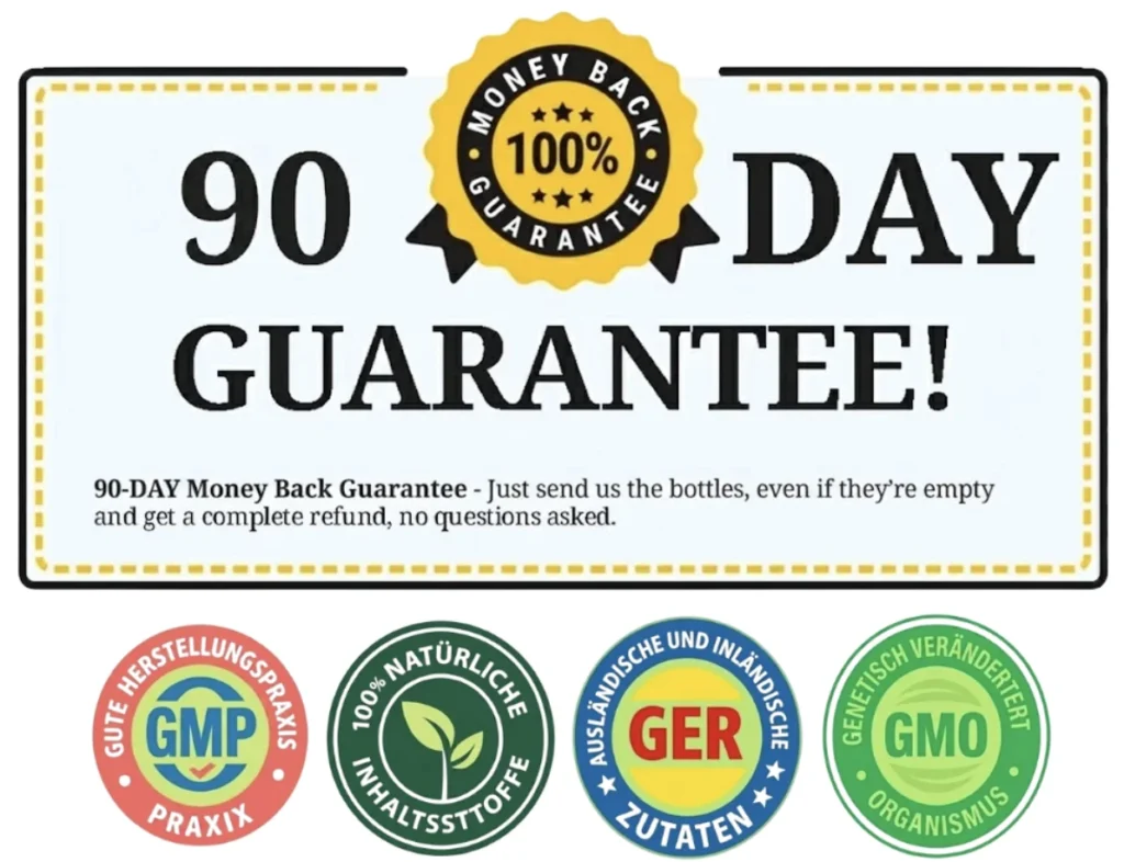 TitanSchub wird mit einer branchenführenden 90-Tage-Geld-zurück-Garantie angeboten. Diese großzügige Garantie zeigt das Vertrauen des Herstellers in die Qualität und Wirksamkeit des Produkts. Kunden können die Flaschen einfach zurücksenden, auch wenn sie leer sind, und erhalten eine vollständige Rückerstattung ohne Fragen. Dies macht den Kauf absolut risikofrei.